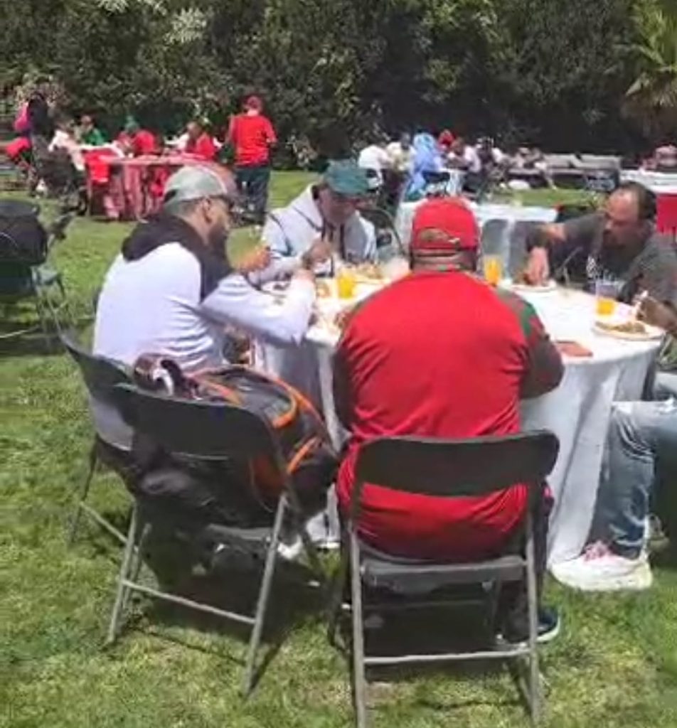 وقد تم نقل الجماهير المغربية بـ 6 حافلات إلى إقامة السفيرة المغربية بالعاصمة التشيلية سانتياغو، حيث أقامت لهم مأدبة غداء قبيل النهائي التاريخي.