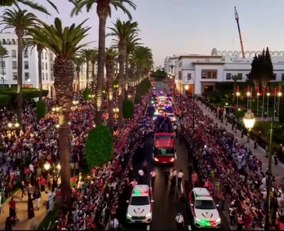 وتشهد مختلف الشوارع والساحات الرئيسية بالعاصمة حضوراً غفيراً للجماهير المغربية التي خرجت للاحتفال بهذا الإنجاز التاريخي، حيث رفعت الأعلام الوطنية ورددت الهتافات والأغاني التي تعبّر عن الفخر والاعتزاز بهذا الجيل الذهبي من اللاعبين.